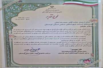 درخشش شرکت شهرک‌های صنعتی کردستان در جشنواره شهید رجایی